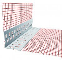 Rohová lišta z neměkčeného PVC s integrovanou síťovinou odolnou vůči alkáliím (100/100 mm).