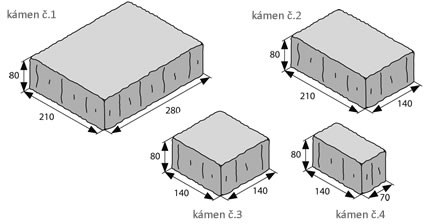 - pokládka se provádí standardně jako u ostatních typů betonových dlažeb, tzn. se zachováním spár 3 - 5 mm mezi jednotlivými kameny