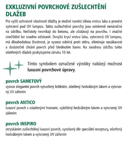 nenasákavý (již v procesu výroby dlažby ošetřeny hloubkovou impregnací pro zamezení nasákavosti a zvýraznění barevnosti výrobků)