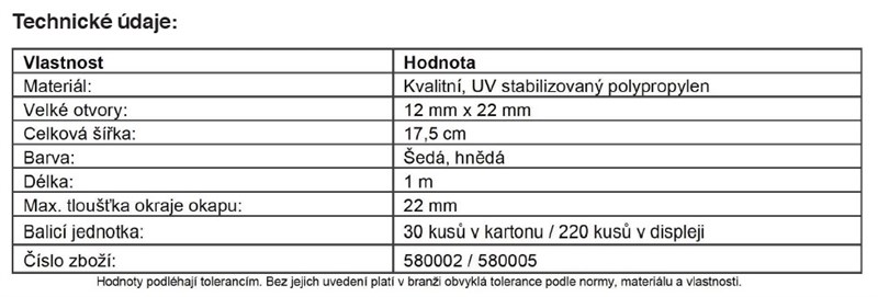 Popis: DARIFIX okapový lapač nečistot 173x1000 mm - ochrana před listím, šedá
