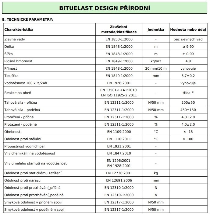 Popis: DEHTOCHEMA Modifikovaný pás BITUELAST DESIGN Přírodní