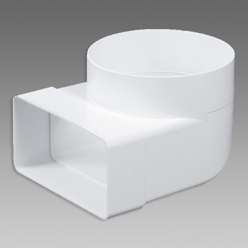 Slouží k přechodu z plochého ventilačního vedení na kulaté při přechodu z vertikálního vedení na horizontální.