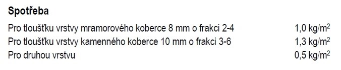 - Pro tloušťku vrstvy kamenného koberce 10 mm o frakci 2-5 1,3 kg/m2