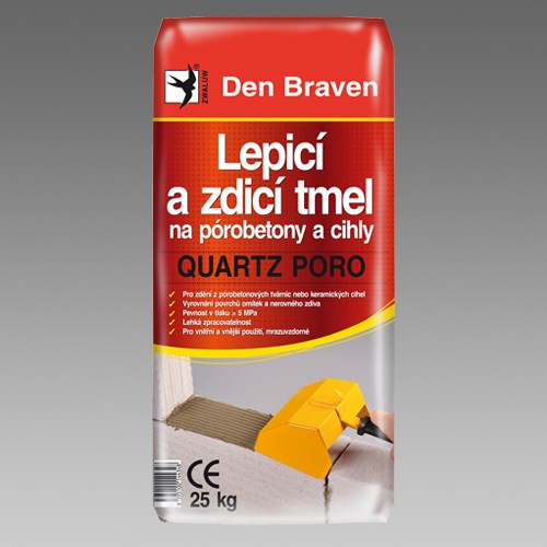 Popis: DEN BRAVEN Lepicí a zdící tmel na pórobeton a cihly QUARTZ PORO 25kg šedá