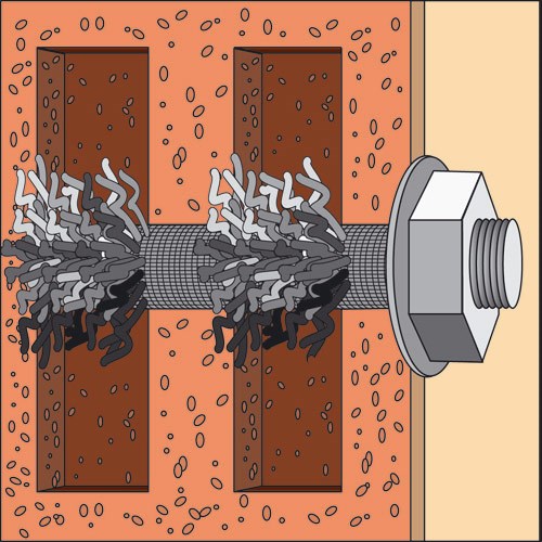 Pro kotvení svorníků a armovacích výztuh v dutých materiálech, kdy sítko je naplněno až po okraj Tekutou kotvou a poté je svorník nebo výztuha šroubovým pohybem vtlačena dovnitř. Plastová sítka jsou vyrobena v různých délkách s vnější vložkou v případě použití menšího průměru šroubu.