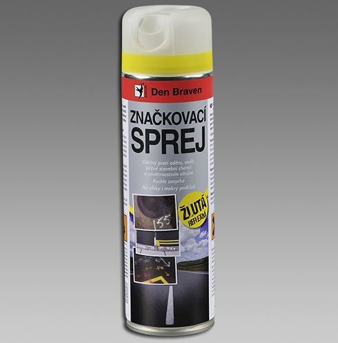 Popis: DEN BRAVEN Značkovací sprej 500ml žlutý/reflexní