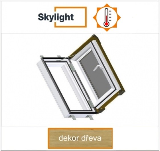 Popis: DOBROPLAST - SKYLIGHT LOFT PREMIUM plastový střešní výlez PVC dezén dřeva 5/7 - 55/78cm