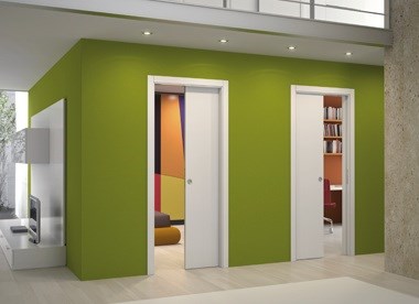Tento model schová dvoje dveře, které se otevírají na opačnou stranu, do jedné kapsy uprostřed. Zákryt přináší řešení zejména v bytových jádrech u prostorů jako jsou wc a koupelna vedle sebe.