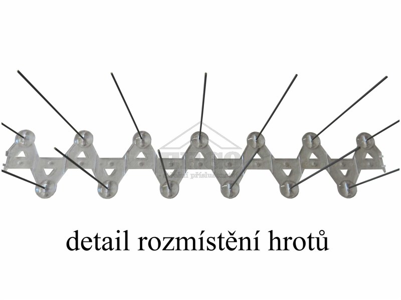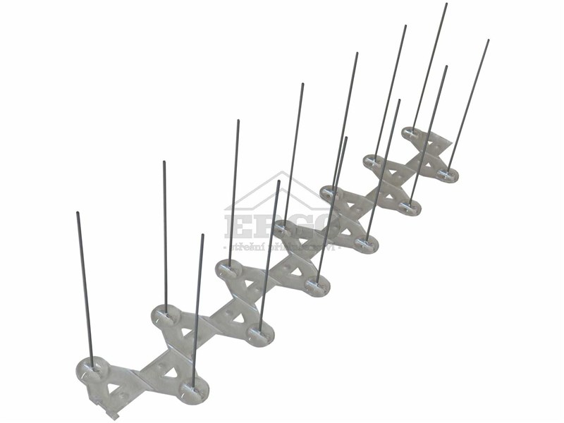 Ochrana proti holubům se instaluje v místech, kde je nežádoucí dosedání těchto ptáků, např. na římsy, parapety, dřevěné trámy, okapy, sochy, památníky aj. Materiál: nosná plocha z plastu, který je opatřen UV stabilizátorem, hroty z nerezu o průměru 1,3 mm