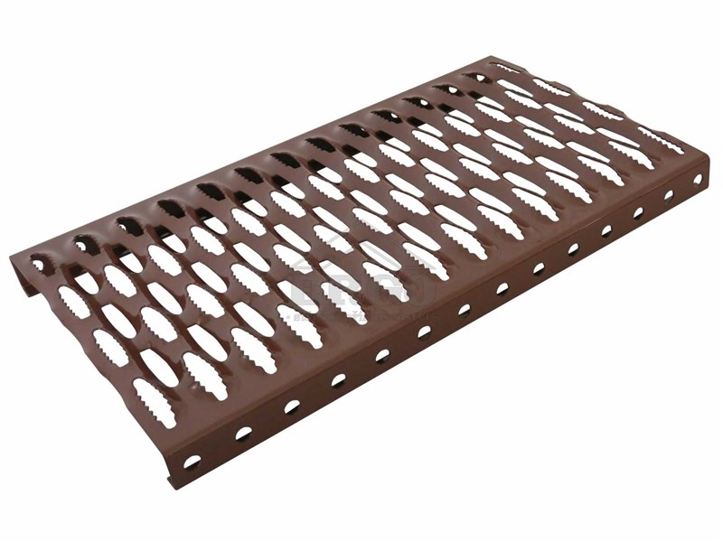 Materiál: ocelový pozinkovaný plech o síle 2 mm s povrchovými protiskluzovými výlisky, barveno