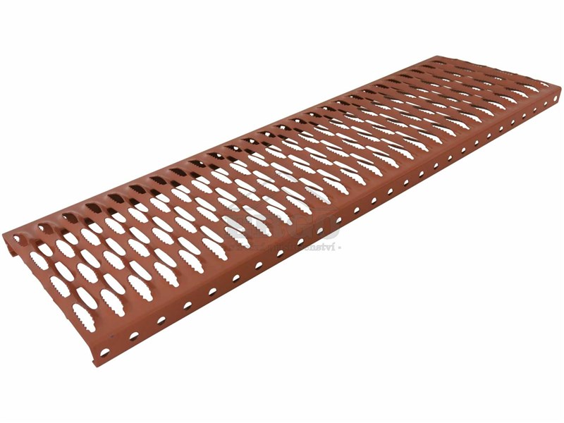 Materiál: ocelový pozinkovaný plech o síle 2 mm s povrchovými protiskluzovými výlisky, barveno