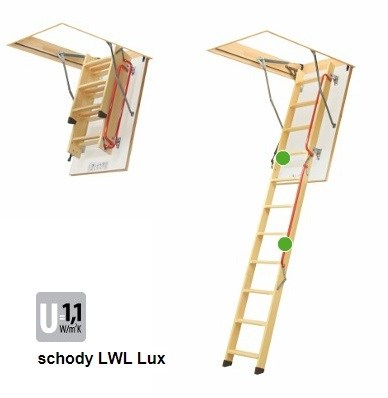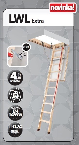 LWL Extra jsou půdní schody nové konstrukce se zvýšenými tepelně izolačními parametry. Pro zajištění větší bezpečnosti a pohodlí jsou dodateč-ně vybaveny madlem připevněným k prostřední-mu dílu žebříku a speciálním mechanismem, který usnadňuje rozkládání a skládání žebříku. Součástí schodů: patky, bílý poklop, dvojnásobný systém těsnění, dvě madla, protiskluzové stupně zarovnané s bočnicemi žebříku, odlehčující mehanismus, snadná montáž, možnost montáže doplňkového příslušenství.