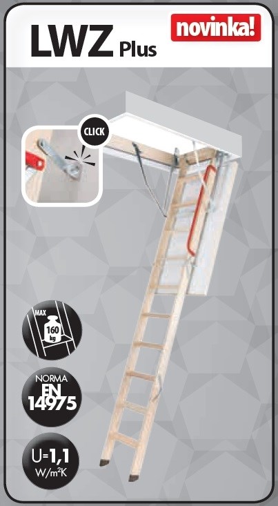 Půdní schody LWZ Plus spojují výhody nové konstrukce se systémem rychlé montáže. Ocelový rám, který vyztužuje dřevěnou skříň, společně s integrovanými, montážními uhelníky a kovovými krycími lištami usnadňují montáž a zkracuji čas potřebný k osazení schodů ve stropě.