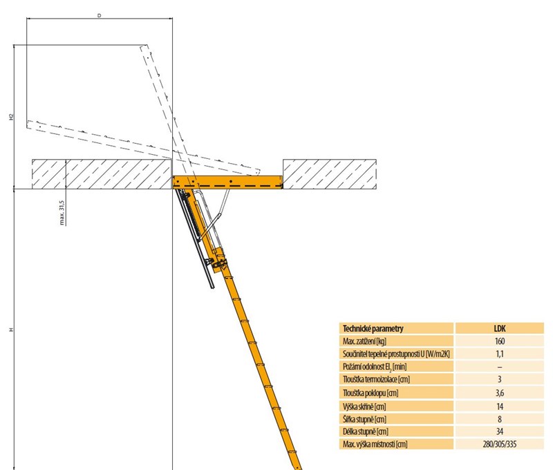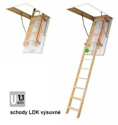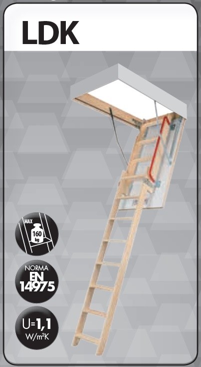 Schody LDK jsou dvoudílné schody s přesouvaným dolním dílem vyrobené z borovicového dřeva. Jsou konstruované podobně jak skládací schody. Různí se způsobem skládání žebříku. Ve schodech LDK jsou díly žebříku přesouvané vůči sobě. Díky tomu je možné eliminování vzdálenosti, která je potřebná k rozložení klasických skládacích schodů. Konstrukce schodů dvoudílných umožňuje rovněž na jejich hlubější připevnění ve stropu. Kompletní půdní schody LDK se skládají ze dvou částí, které jsou dodávány ve dvou baleních (schody LDK a posuvný segment LDS).