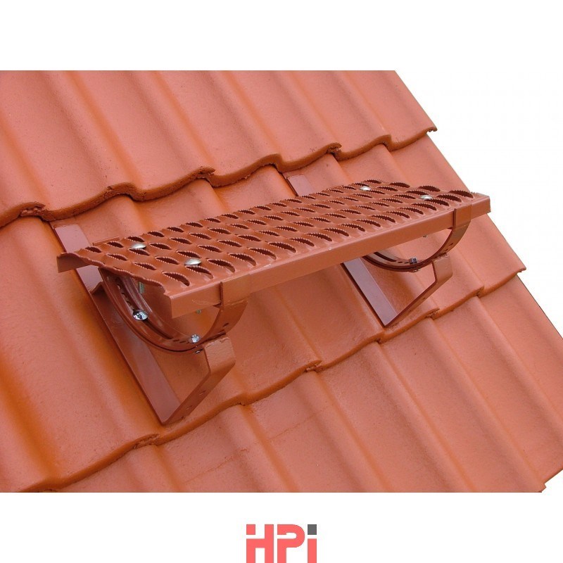 Držák roštu je určen pro sklonově stavitelnou montáž komínové lávky nebo roštu v rozsahu 15°-55°. Upevňuje se šrouby do držáku stoupací plošiny. Je vyroben z pásové oceli o tloušťce 4 mm žárově zinkované s komaxitovým nástřikem výrazně zvyšujícím odolnost proti povětrnostním vlivům a mechanickému poškození. (V setech komínových lávek a roštů je společně s montážním materiálem součástí dodávek. Držák je součástí zařízení určeného pouze pro pohyb po střeše, nesmí sloužit jako kotvící bod osobních ochranných prostředků proti pádu! Výrobek dle EN 516:2006 „Konzoly střešních lávek a stupňů“, typ: třída 1.