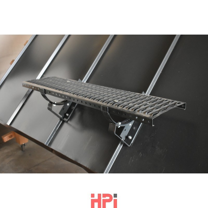 Držák stoupací plošiny „Click“ pro imitace falcované krytiny s výškou 25-38mm. Slouží společně s držákem roštu a roštem k vytvoření bezpečného prvku pro pohyb na střeše. Držák se umisťuje na spoje plechu na takz. Click sevřením (stiskem falcovaného lemu) a dotažením obou šroubů. Materiál: ocelová pásovina, žárově pozinkováno 275 g/m2. Povrchová úprava přírodní pozink nebo vypalovaná barva (komaxit).