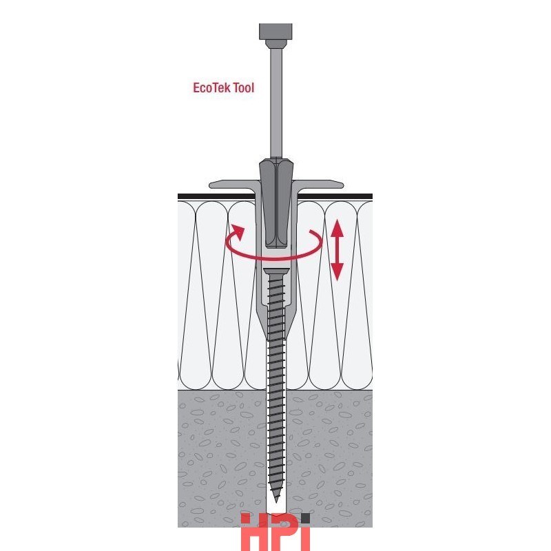 Nastavovací nástroj pro ustavení šroubu do betonu JBS-R v kombinaci s talířovou podložkou EcoTek 50. Unašeč: 1/4" šestihran DIN/ISO 1173 - E6,3