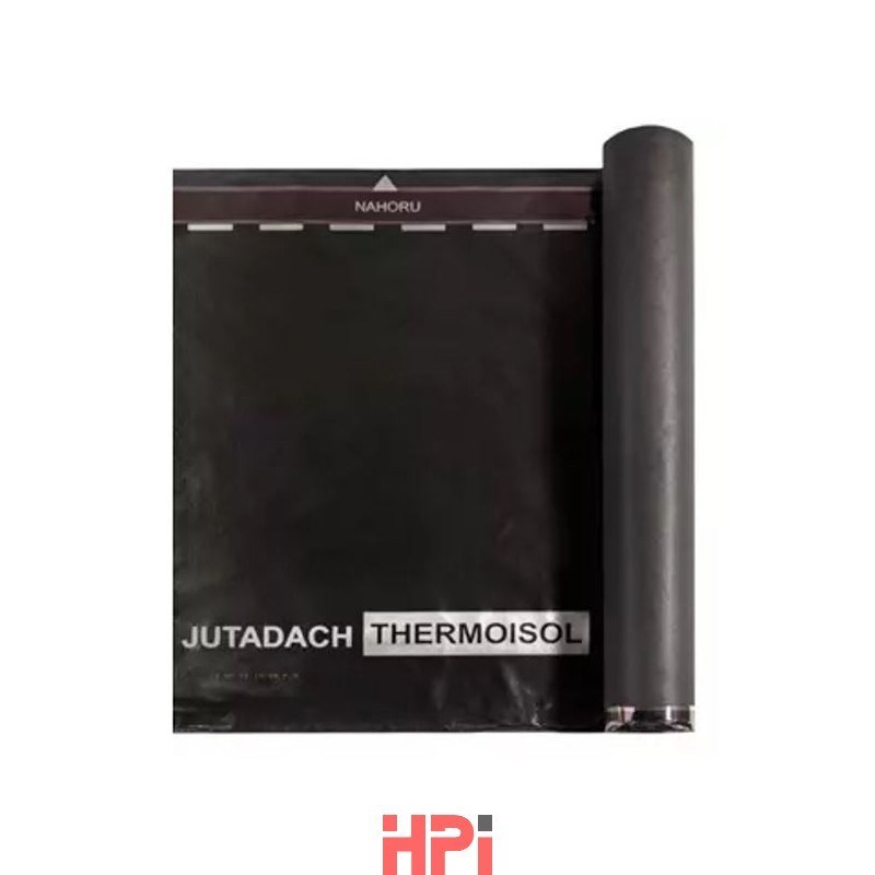 JUTADACH THERMOISOL 2AP® (200 g/m2) kontaktní VYSOCE DIFÚZNÍ membrána se skládá ze spodní netkané polyesterové textilie a extruzně naneseného polyuretanu. Odvádí vodní páry z konstrukce ven, vytváří uzavřený systém pro tepelnou izolaci, která je chráněná před zafoukaným deštěm, sněhem a prachem při extrémním počasí. Při slepených spojích plní funkci větrozábrany, čímž zvyšuje účinnost tepelné izolace. Membránu JUTADACH THERMOISOL ® lze objednat pouze ve variantě s integrovanými aplikačními páskami - JUTADACH THERMOISOL 2AP® pro snadný a rychlý spoj (páska na pásku). Role je široká 1,5m s návinem 50bm. Membránu JUTADACH THERMOISOL 2AP® lze použít jako kontaktní i nekontaktní doplňkovou (pojistnou) hydroizolaci do bedněných i nebedněných systémů šikmých střech. Všechny podstřešní membrány mohou být použity i v provětrávaných fasádních konstrukcích bez vlivu UV záření. Použití membrány JUTADACH THERMOISOL 2AP (viz. tabulka tříd těsnosti DHV). Minimální sklon střechy je 10° - při dodržení montážních dispozic. Sd = 0,15 m (plošná hmotnost 200 g/m2) reakce na oheň E.