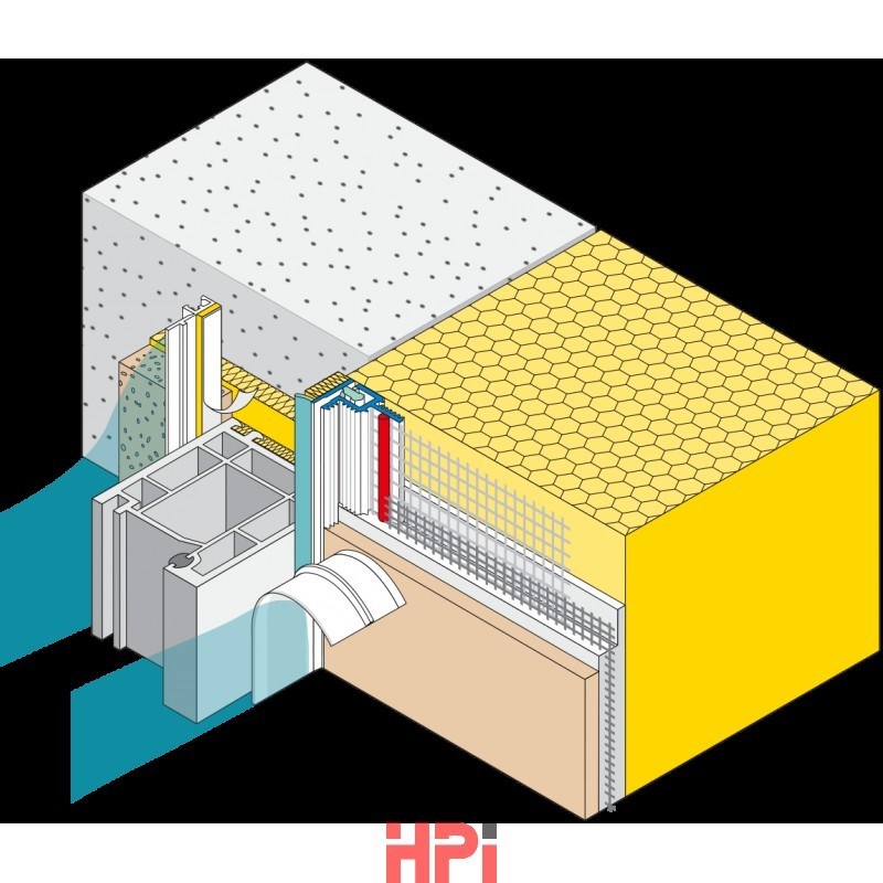 Dvoudílná konstrukce, kdy horní část profilu je vložen do spodní části s kolejničkou umožňuje kompenzovat horizontální i vertikální pohyb mezi okenním rámem a zateplovacím systémem. Tato konstrukce umožňuje použití profilu pro montáž na okna uložená v ostění, nebo rovnoběžně se zdivem do tloušťky izolantu 160 mm a velikosti výplně do 10 m2. Lišta je vhodná pro novostavby, ale díky šířce 9,5 mm i pro rekonstrukce. Součástí lišty je odlamovací lamela se samolepicí páskou pro připevnění ochranné folie chránící okenní rámy a výplň během montáže zateplovacího systému před chemickým a mechanickým poškozením, po jejím odlomení se teleskopická funkce profilu aktivuje. Lišta splňuje požadavky EAE (Evropská asociace pro ETICS) pro profily typu 3D. Balení 25ks/karton, délka 2,4 m. Šířka profilu 9,5 mm, přesah tkaniny 125 mm. Materiál – UV stabilní PVC, TPE jazýček, PE páska, tkanina – síťovina se skelným vláknem s protialkalickou úpravou. Provedení bílá , antracit.