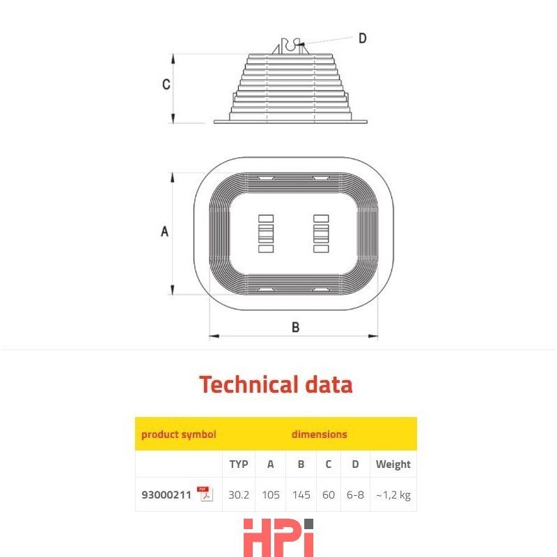 Popis: HPI Podpěra pro vedení pro ploché střechy - BETON/PVC 145*105mm
