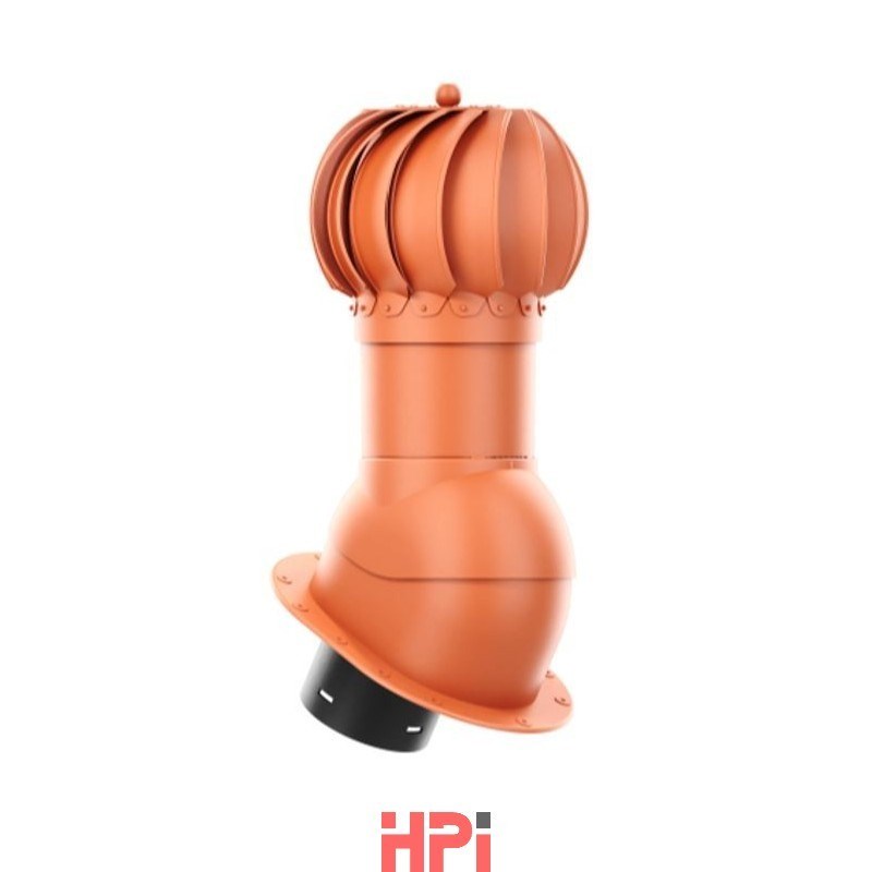Rotační odvětrávací set je určen pro rovné plechové krytiny. Slouží k odvětrání střešního pláště, půdních prostor, digestoří, sklepů, WC, koupelen apod. Rotační hlavice o průměru 150 mm zvyšuje větrací kapacitu vytvářením stálého podtlaku v potrubí. Set je vyroben z UV stabilizovaného polypropylenu (PP). Pro zajištění chodu i v těch nejtěžších podmínkách je hlavice opatřena otočným ocelovým mechanismem uloženým do dvojitých kuličkových ložisek v olejové lázni. Integrované butylové těsnění zajišťuje vodotěsnost mezi krytinou a větrací taškou. Vruty pro montáž jsou součástí balení. Určeno pro šikmé střechy se sklonem od 5° do 45°.