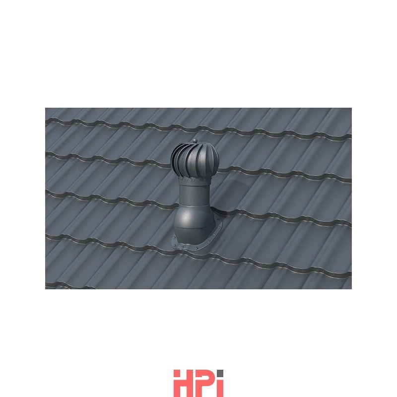 Rotační odvětrávací set je určen pro profilované plechové krytiny s výškou vlny 30 mm. Slouží k odvětrání střešního pláště, půdních prostor, digestoří, sklepů, WC, koupelen apod. Rotační hlavice o průměru 150 mm zvyšuje větrací kapacitu vytvářením stálého podtlaku v potrubí. Set je vyroben z UV stabilizovaného polypropylenu (PP). Pro zajištění chodu i v těch nejtěžších podmínkách je hlavice opatřena otočným ocelovým mechanismem uloženým do dvojitých kuličkových ložisek v olejové lázni. Integrované butylové těsnění zajišťuje vodotěsnost mezi krytinou a větrací taškou. Vruty pro montáž jsou součástí balení. Určeno pro šikmé střechy se sklonem od 5° do 45°.
