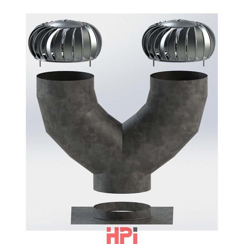 Tento set je určen pro případ, kdy jedna turbína není k odvětrání dostatečná (vhodné pro bytové a panelové domy nad 7 pater). Set je určený na vyústění "stoupaček", kde není možné z rozměrových důvodů použít dlouhou základnu se dvěma průduchy ("Set pro bytový dům 3"). Uvedené provedení obsahuje 2 kusy nejvýkonnější hlavice Lomanco® TIB 14 v bezbarvém provedení, rozdvojku z pozinkovaného plechu (takzvané " kalhoty " neboli " ypsilon rozdvojku ") a jednoprůduchovou základnu z pozinkovaného plechu o rozměru 600x600 mm pro usazení na plochou střechu.
