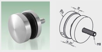 držák skleněné výplně o tloušťce 8-20mm, na 1bm skleněné výplně je potřeba 6 ks kotev, sklo je nutné předvrtat dírou o průměru 20 mm