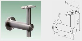 JAP Nerezový Krček madla na zeď pro balustrády výškove nastavitelný, AISI 304