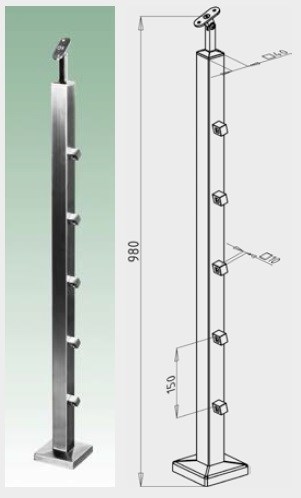 Popis: JAP Nerezový sloupek hranatý ke kotvení ze shora pro nerezový prut hranatý, AISI 304
