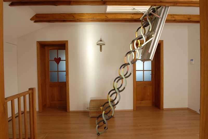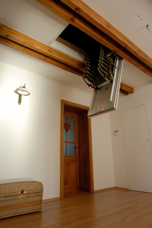 Sendvičové víko: dřevěný rám vyplněný izolačními materiály je opláštěn pozinkovaným plechem. Podhledová část je lakována v bílé barvě a kryta ochrannou fólií. Určeno pro světlou výšku místnosti od 2200 - 3200 mm. Nabízíme celkem 15 půdorysných rozměrů ( d x š ) od 700 x 500 mm až po 1200 x 700 mm. Pro snadné zabudování do stropu je nutné zadat jeho tloušťku. Nosnost schodů je 180 kg.