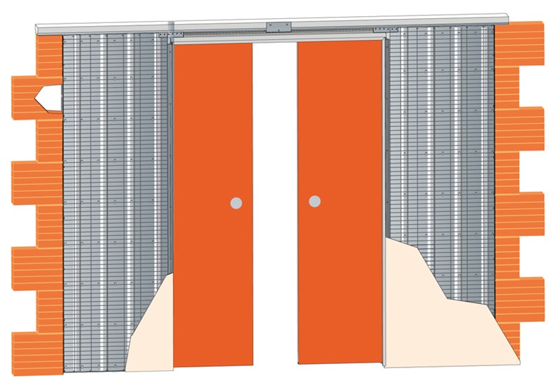 - Pouzdro pro zasouvací dveře je vyrobeno z kvalitní oceli a chrání dveře uvnitř zdi