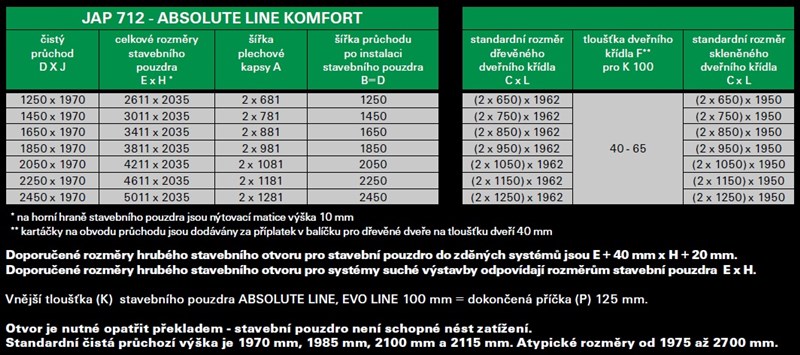 Popis: JAP Stavební pouzdro AKTIVE LINE KOMFORT šířka 2450 mm