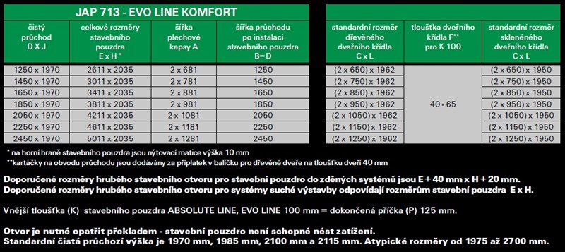 průchod 1970mm nebo 2100mm, tl. dokončené příčky 100mm nebo 125mm prosím vyznačit v poznámce při objednávání !! , vyrábí se pro dokončenou příčku tl. 125mm , synchronizovaný pojezd v ceně Doplňující údaje