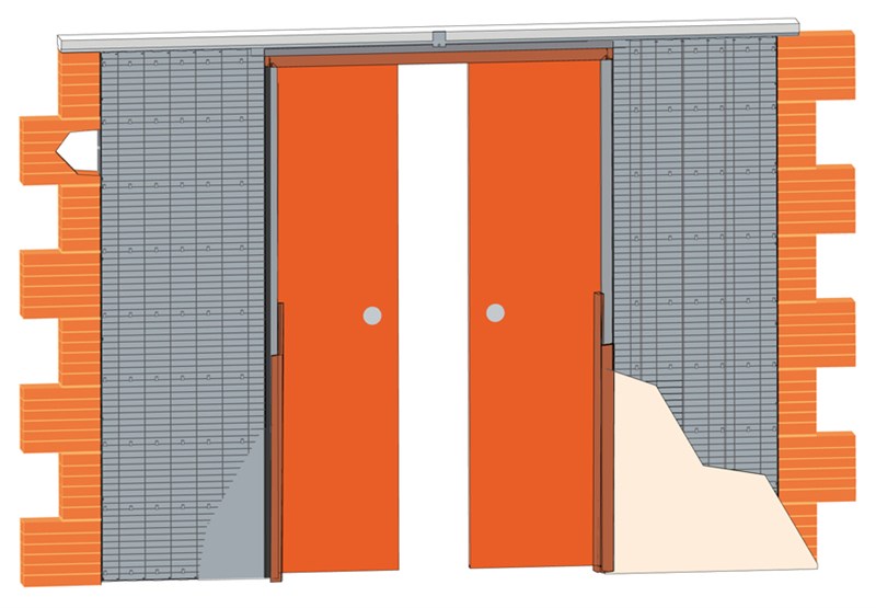- Pouzdro pro zasouvací dveře je vyrobeno z kvalitní oceli a chrání dveře uvnitř zdi