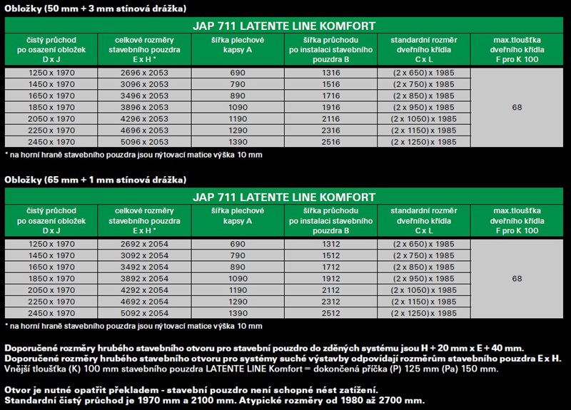 Popis: JAP Stavební pouzdro LATENTE LINE KOMFORT šířka 1650 mm