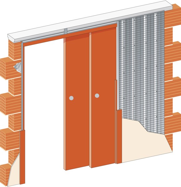 - Pouzdro pro zasouvací dveře je vyrobeno z kvalitní oceli a chrání dveře uvnitř zdi