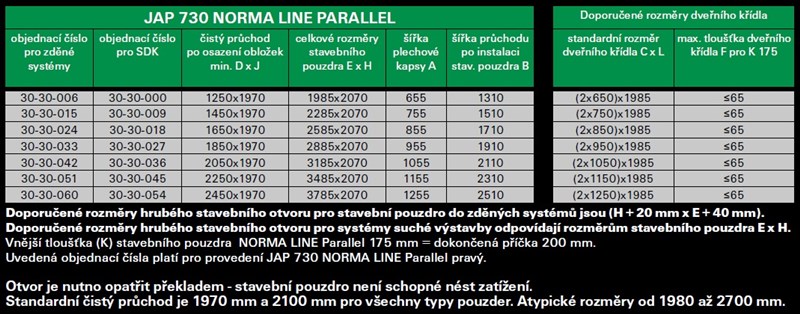 Popis: JAP Stavební pouzdro NORMA LINE PARALLEL šířka 2050 mm