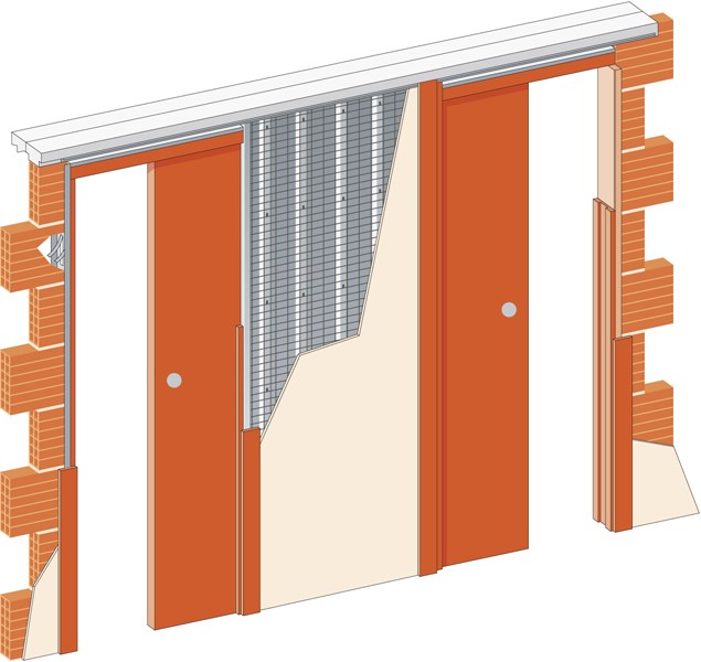 - Pouzdro pro zasouvací dveře je vyrobeno z kvalitní oceli a chrání dveře uvnitř zdi