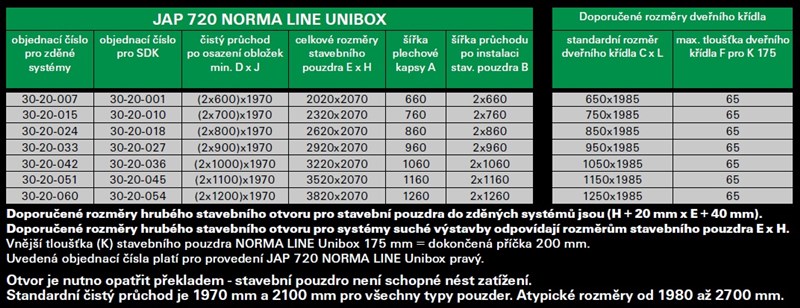 Popis: JAP Stavební pouzdro NORMA LINE UNIBOX šířka 600+600 mm