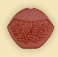 Betonové plastiky Slunce a Hrozen ve tvaru hřebenové ucpávky přizdobí detail průsečíku štítových hran a hřebene.