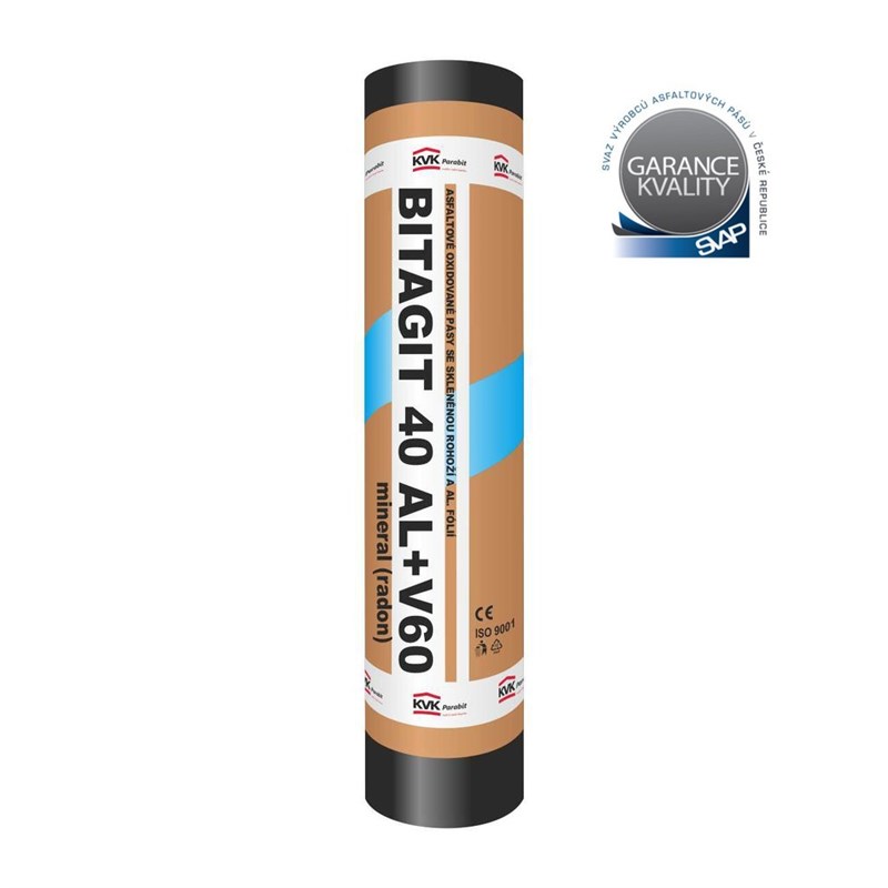 BITAGIT 40 AL + V60 mineral (radon) je určený jako protiradonová zábrana ve všech pásmech radonového zatížení pro nejnáročnější případy, jako hydroizolace spodních staveb proti zemní vlhkosti, jako vysoce účinná parozábrana u jednoplášťových střech.