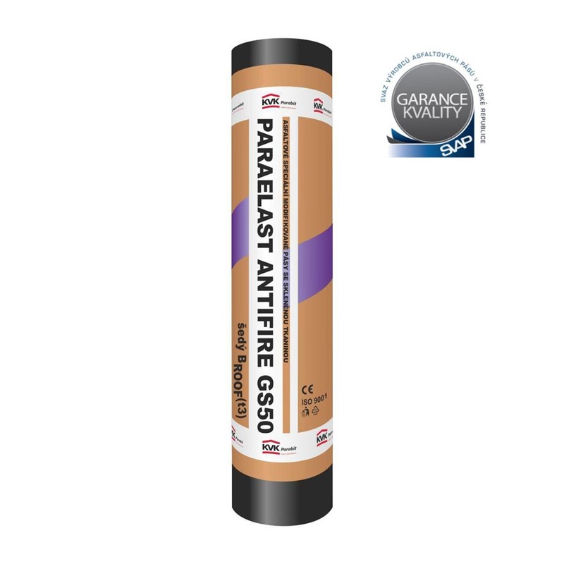 PARAELAST ANTIFIRE G S50 je určen jako finální vrstva hydroizolačního souvrství střešních plášťů s požadavkem na klasifikaci střešního pláště při vnějším působení požáru třídy Broof(t3). Pás dále vyniká velkou pevností i za nízkých teplot, vysokou mechanickou odolností, dlouhodobou životností a je určený pro všechny typy konstrukce střech.