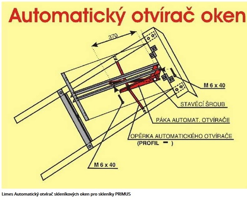 Popis: LIMES Automatický otvírač skleníkových oken pro skleníky PRIMUS POV-01