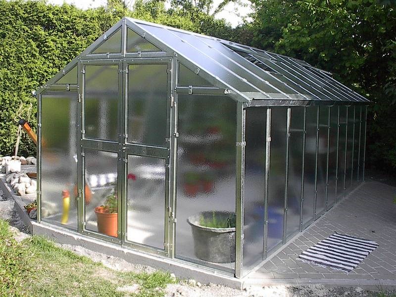 Popis: Boční stěny skleníku jsou téměř svislé. To umožňuje umístění různých regálků k vnitřním stěnám. Tento skleník je především určen do menších zahrádek. Díky širokým dveřím pohodlně projdete do skleníku i s rozměrnými předměty. Jistě to uvítáte nejen při vyvážení hlíny, ale i zjara, když budete chtít do skleníku zanést truhlíky s pelargoniemi nebo velké lísky se sadbou.