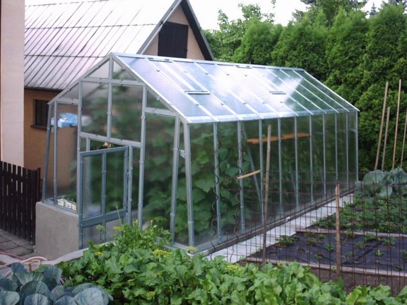 • plechové police dlouhé 1,5 metru můžeme libovolně odebírat a měnit tak v průběhu roku využitelnost skleníků – pěstování ze země, v květináčích na policích, ...