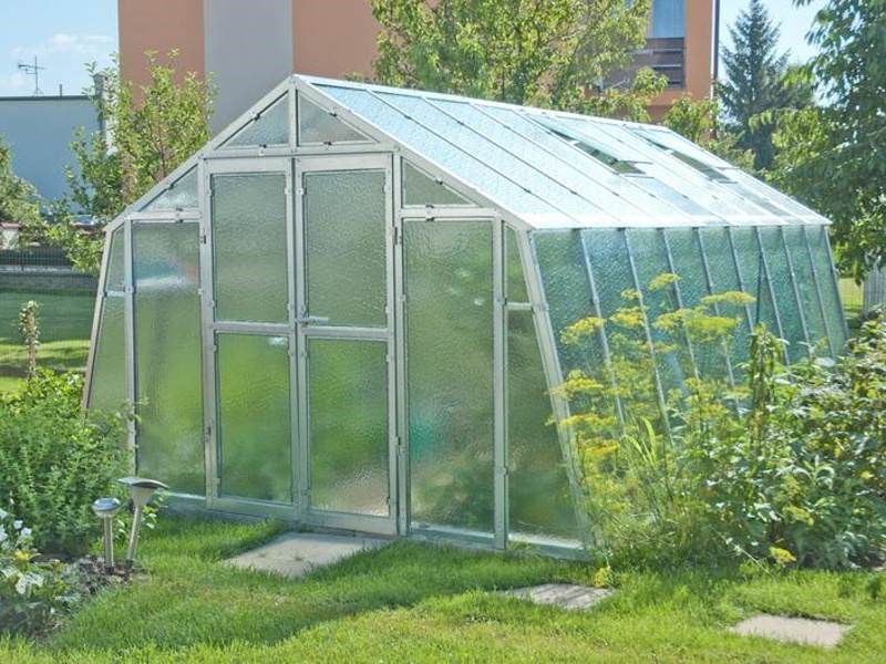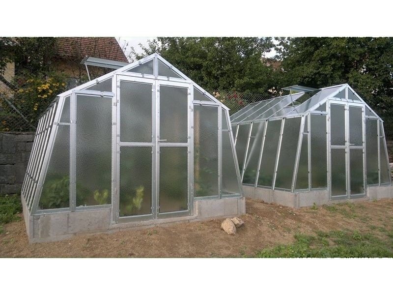 Popis: Boční stěny skleníku jsou šikmé, zajišťují optimální dopad slunečních paprsků.