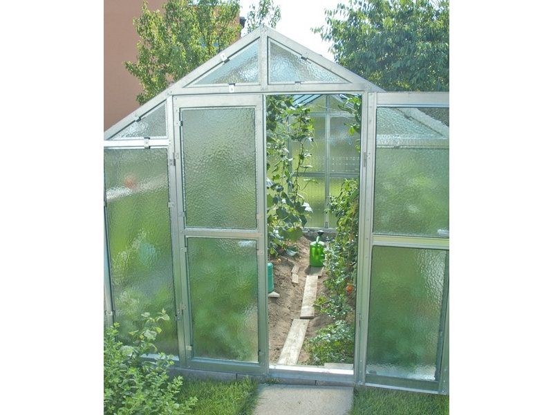 Dveře: Dvoukřídlové pantové dveře o šíři 105 cm Zajímavým a velmi praktickým doplňkem ke skleníku jsou prodloužené dveře. Díky nim získá Váš nový skleník zcela jiné rozměry.