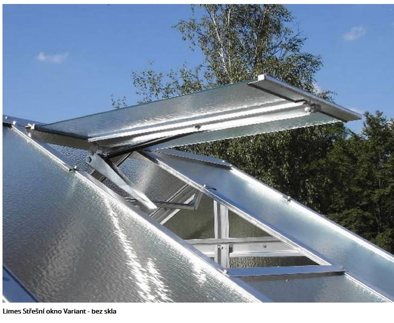 Pokud potřebujete důkladnější větrání, můžete si přiobjednat další střešní okna. Objednáváte pouze konstrukci. Sklo je součástí skleníku.