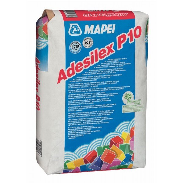 Popis: MAPEI ADESILEX P10 - Vysoce kvalitní zářivě bílé cementové lepidlo 25kg
